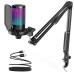 Пакет USB-мікрофона для ігрового комп’ютера включає: стоячий комп’ютерний мікрофон із амортизаційним кріпленням - 1 шт. висувний фільтр - 1 шт. підставку з адаптером - 1 шт. USB-кабель 8.3 фута (2.5 м) - 1 шт. С-подібний затискач - 1 шт. посібник користувача - 1 шт. Мікрофонну стійку RGB можна щільно прикріпити до столу товщиною до 2 дюймів.